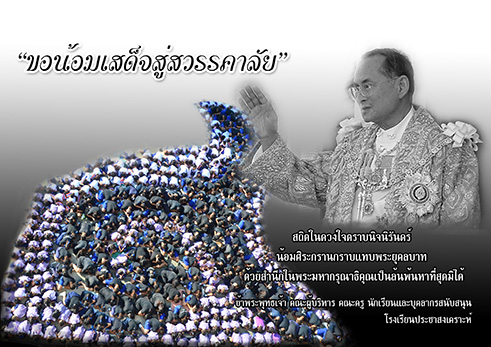 เมื่อวันจันทร์ที่ 14 พฤศจิกายน 2559 คณะผู้บริหาร คณะครู นักเรียน และบุคลากรสนับสนุนโรงเรียนประชาสงเคราะห์ ทั้งส้ิน 500 คน ได้รวมใจเป็นหนึ่งเดียว แปรอักษรเลขเก้าไทย บริเวณลานหน้าอาคารเรียนเพื่อถวายเป็นพระราชกุกศลแก่สมเด็จพระเจ้าอยู่หัวในพระบรมโกศ กิจกรรมครั้งนี้ทุกคนรู้สึกร้อนและเหนื่อย แต่ทุกคนก็ตระหนักดีว่า พ่อหลวงของเราทรงร้อนและเหนื่อยมากกว่านี้หลายเท่านัก จึงทำให้ทุกคนร่วมทำกิจกรรมด้วยความสามัคคีและได้ภาพที่ออกมาสวยงาม |