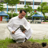 นำโดย คุณพ่อ ซิสเตอร์ คณะครู และสภานักเรียน