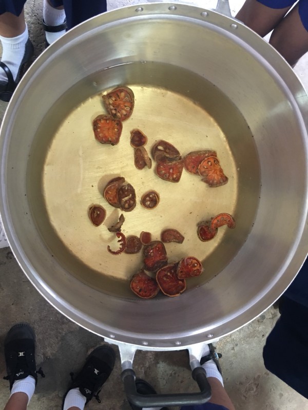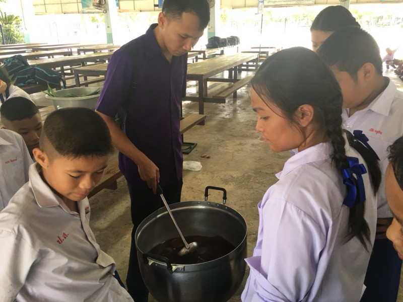 วุ้น บัวลอย ขนมต้มใบเตย บัวลอยไข่หวาน น้ำสมุนไพรอัญชัญและเก๊กฮวย ขนมไข่นกกระทา กล้วยบวชชี น้ำมะตูม ขนมครก ข้าวต้มมัด และน้ำสมุนไพรต่างๆ ซึ่งกิจกรรมผ่านไปได้ด้วยดี เด็กๆให้ความสำคัญกับวัสดุธรรมชาติที่เราสามารถนำมาผลิตเป็นขนมและอาหารที่เป็นภูมปัญญา และรู้จักวิธีการค้าขาย มีจิตอาสา และแบ่งปันช่วยเหลือซุ่งกันและกันอย่างดี |
