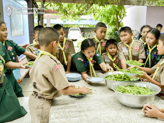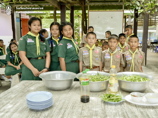 ยึดตามหลักเศรษฐกิจแบบพอเพียง ปลูกผักแบบผสมผสาน โดยเด็กๆสามารถมีรายได้ และ สามารถนำผักสวนครัวสดๆ มาทำการปรุงอาหารเป็นมื้อเที่ยง ได้อย่างน่าภูมใจ อีกทั้งยังสร้างกระบวนการคิดสร้างสรรค์ การดำเนินชีวิต แบบภูมิปัญญาท้องถิ่นต่างๆ อาทิเช่น ผักบุ้ง กระเพรา โหระพา พริก ตะไคร้ ข่า มะนาว ถั่วฝักยาว |