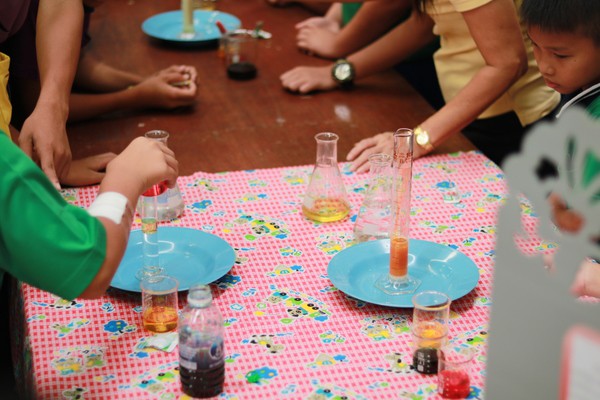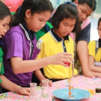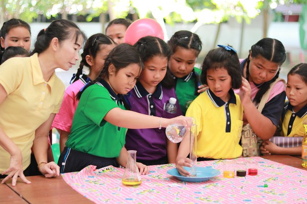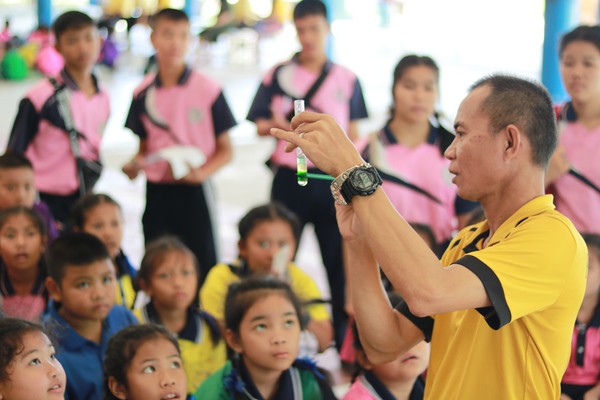 ซึ่งบรรยากาศภายในงานในช่วงเช้ามีทั้งการแสดง Sci. Show มีการให้นักเรียนเข้าฐานกิจกรรมต่างๆ ให้ความรู้ในเรื่องของแรง ของสารต่างๆ การทำงานของน้ำ ไฟฟ้าสถิต การทำปฏิกิริยาต่างๆ การกรอง กรทำลูกบอลเด้งดึ๋ง