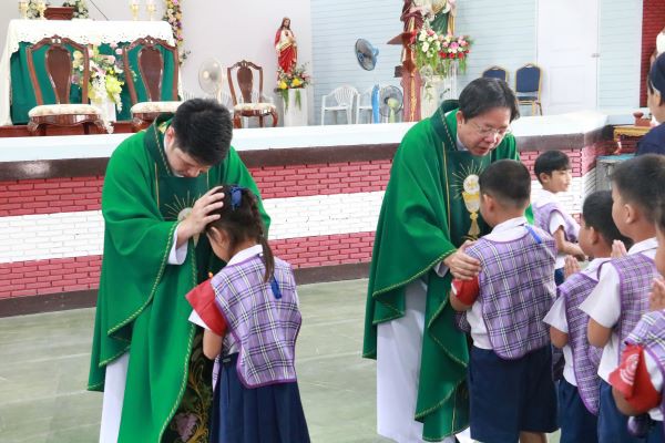 วันนี้ทางโรงเรียนได้รับเกียรติจากคุณพ่อนรเทพ ภานุพันธ์มาเป็นประธานในพิธีมิสซาบูชาขอบพระคุณโอกาศปิดปีการศึกษา 2562 ร่วมกับคุณพ่อสมภพ แซ่โก ผู้จัดการโรงเรียนประชาสงเคราะห์ หลังมิสซาคุณพ่อได้อวยพรให้กับเด็กนักเรียนชั้นอนุบาล3 และมัธยมศึกษาปีที่3 ที่กำลังจะสำเร็จการศึกษาจากโรงเรียนของเรา |