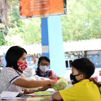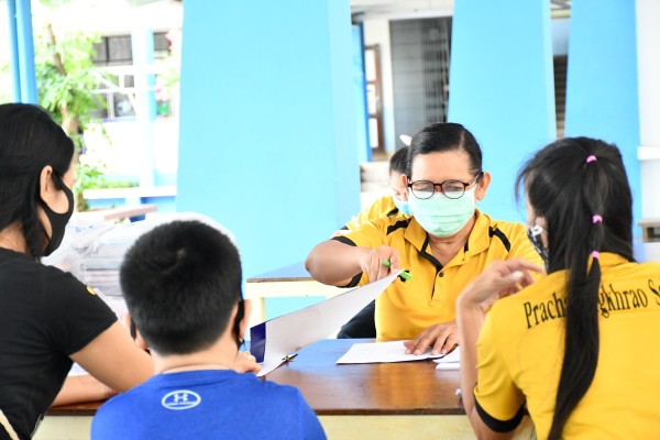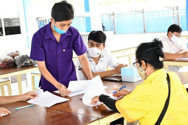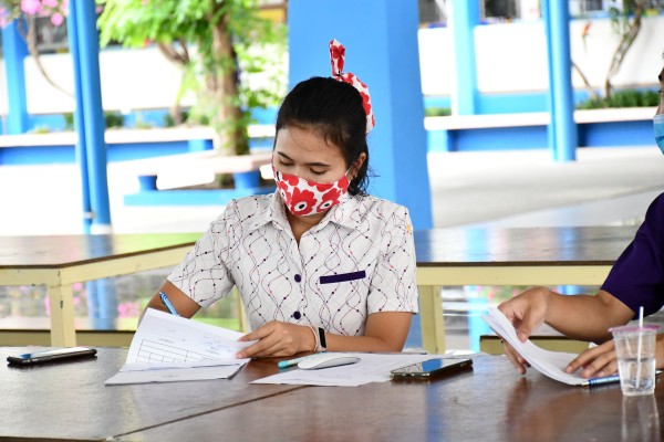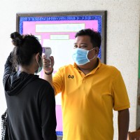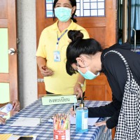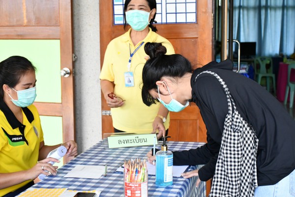 มีการตรวจวัดไข้ ลงทะเบียน ล้างมือด้วยเจลแอลกอฮอล์ และให้ผู้เข้ารับการติดต่อสวมหน้ากาอนามัยก่อนเข้าโรงเรียนทุกคน |