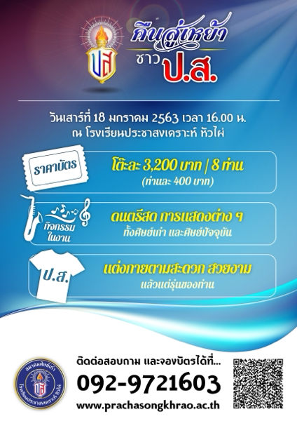 วันที่ 18 มกราคม 2563 เวลา 16:00น. ณ โรงเรียนประชาสงเคราะห์ หัวไผ่